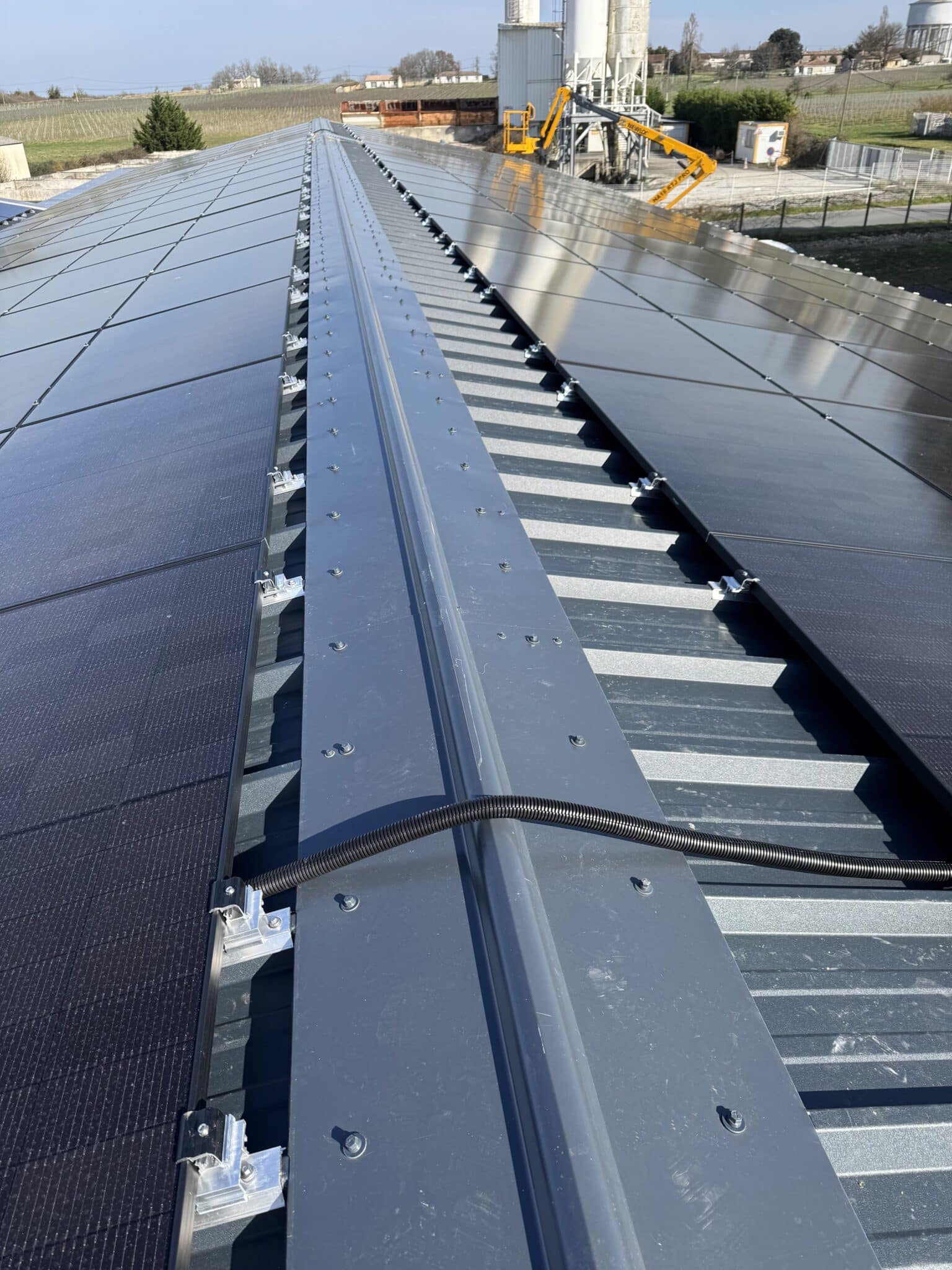 Nous avons installé une centrale photovoltaïque en revente totale d’une puissance de 216 kWc, composée de 480 panneaux PEIMAR, montés sur une structure ITAL SOLAR spécialement conçue pour les toitures en bac acier.